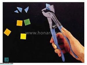 با استفاده از انبر کاشی ،  کاشی ها را به تکه های کوچکتر میشکنیم