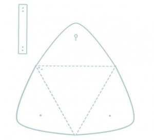 مرحله چهارم: دو گوشه ی پایینی مثلث رو روی هم قرار می دیم به صورتی که سوراخ های پانچ شده روی هم قرار بگیرن و بعد قطعه ی پایینی دکمه رو از داخل سوراخ ها رد می کنیم .
