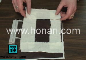 چرم را بر روی قسمت چسبنده تثبیت کننده قرار دهید.