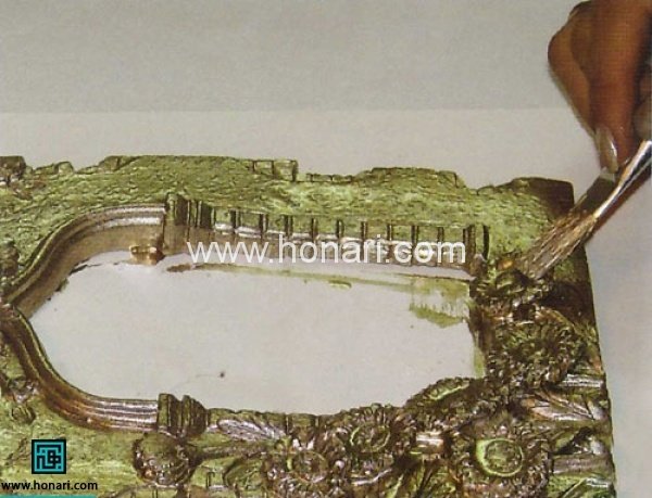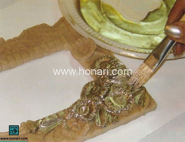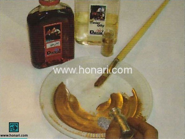 ابتدا باید رنگ سیلور رو درست کنیم. از ترکیب اکلیل پودری طلایی و نقره ای رنگ سیلور درست می کنیم و بعد آن را با قلمو روی کار می کشیم و به مدت 1 روز می گذاریم تا خشک شود .